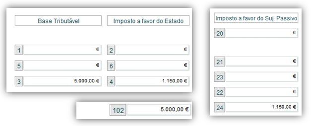 Para além dos campos acima mencionados devem ser preenchido os campos 99 a 102, consoante o caso, do Quadro 06A, com o valor da base tributável.