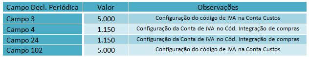 Dado que todas as configurações necessárias ao correcto processamento foram devidamente efectuadas, os valores apresentados versus campos da declaração Periódica de IVA foram os seguintes: