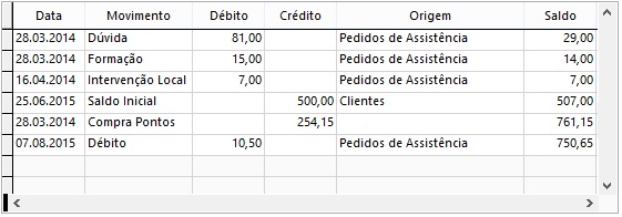 Extrato de movimentos de conta corrente de pontos deste clienteEsta opção apresenta o extrato de todos os movimentos de pontos existentes de um cliente.