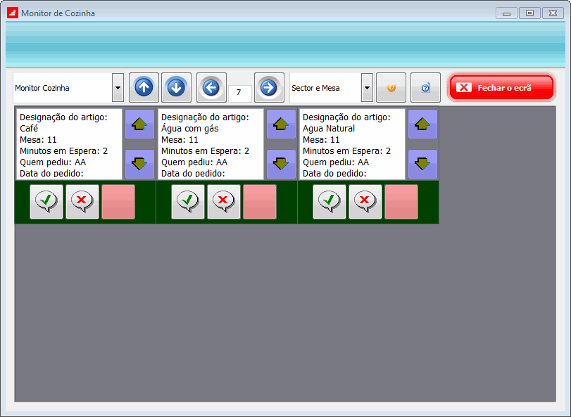 Sempre que existe a reimpressão de um pedido, com alguma alteração, passa a figurar um pequeno botão, no respectivo pedido que está no Monitor de Cozinha, através do qual, o utilizador do Centro de Preparação pode aceder a um ecrã que contém a descrição anterior, o que lhe permite perceber o que mudou.