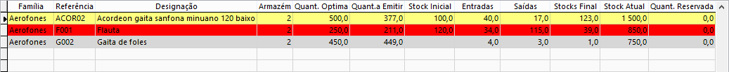 As referências que tiverem a Quantidade saída em determinado armazém (no período definido) superior ou igual à quantidade ótima definida nesse armazém, verão a sua quantidade ótima multiplicada pelo fator definido. Essa nova quantidade ótima será utilizada para calcular a quantidade a transferir. As linhas que forem sujeitas à aplicação deste fator, surgirão na lista de resultados da preparação com uma cor diferente (VERMELHO).