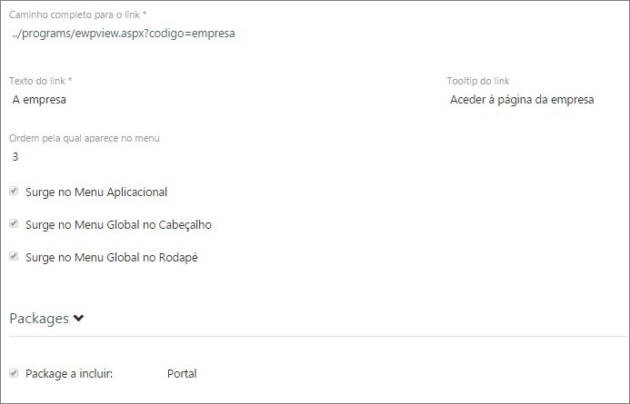 Para configurar os menus que aparecem na Loja Web é necessário aceder ao menu