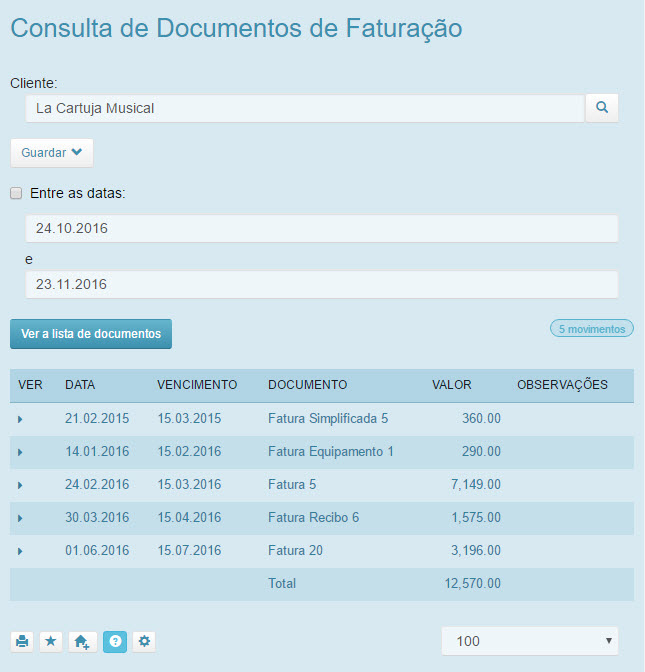 Permite ao utilizador consultar uma Listagem dos Documentos de Faturação emitidos àquele cliente específico.